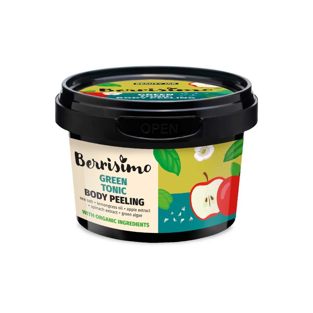 Scrub pentru corp cu alge verzi, extract de mar si ulei de lemongrass, Berrisimo, Beauty Jar, 400g