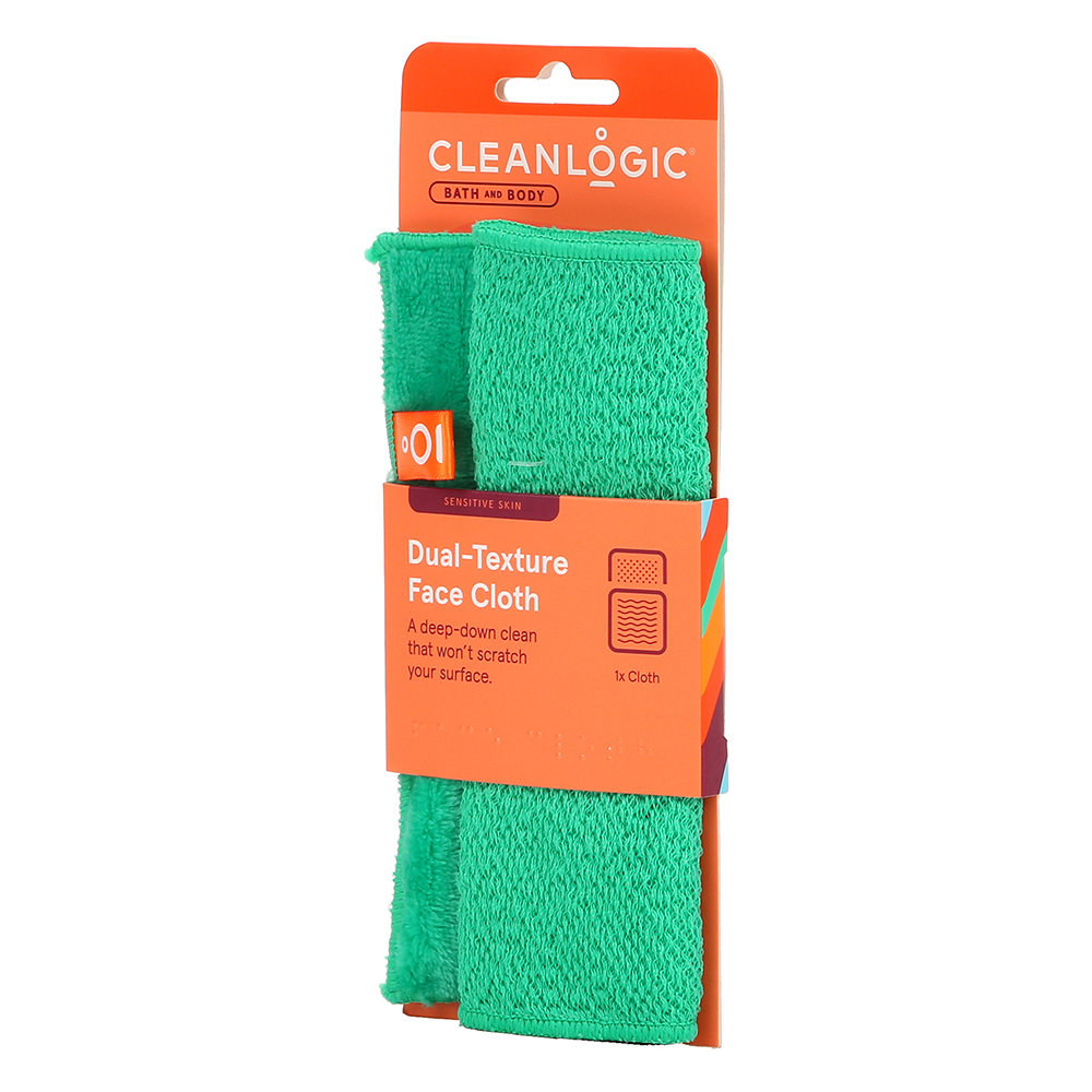 Spala impuritatile cu prosopul exfoliant cu doua fete Cleanlogic. Uda partea din microfibra cu apa pentru a indeparta machiajul, uleiul si murdaria. Apoi, foloseste cealalta parte si adauga gel de dus pentru a exfolia pielea terna si uscata pentru o stralucire naturala.